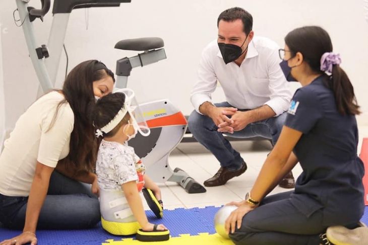López Alcaraz se encontraba en su terapia de rehabilitación, cuando llegó hasta su lugar el gobernador Mauricio Vila Dosal, quien este día realizó un recorrido para constatar las instalaciones y operación de este recinto que ofrece una atención de calidad y valoración ortopédica, así como en piezas de órtesis y prótesis certificadas, ayudando con ello a mejorar las condiciones de vida no sólo de pacientes de todo el estado, sino también de Campeche, Quintana Roo, Tabasco e, incluso de países como Honduras, Guatemala y Belice.