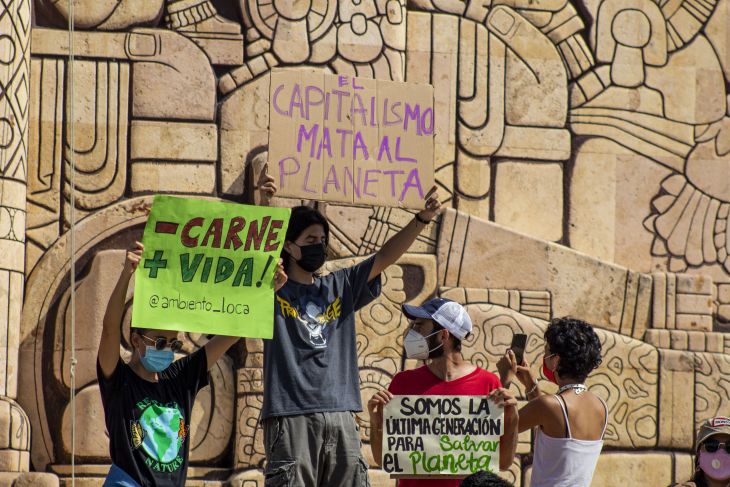 Julia Bracamontes Cetina, directora de Fridays For Future Yucatán, tomó la voz para decir su exigencia: justicia climática a nivel mundial.