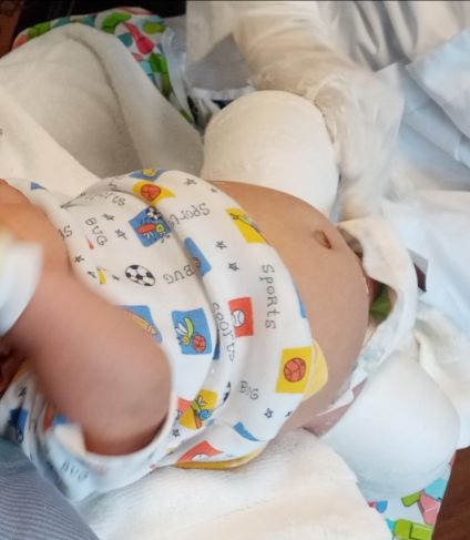 Desde que el bebe cumplió 15 días de nacido iniciaron con el tratamiento llamado método Ponseti que consiste en estirar los pies del bebé y colocarlos en yeso de forma semanal, para ayudarles a tomar la posición normal y no estar torcidos.