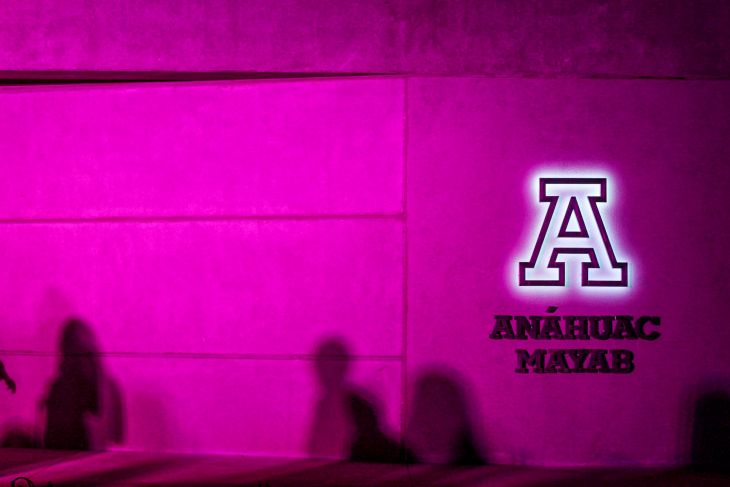 La universidad Anáhuac Mayab fue iluminada con el color rosado, de forma simbólica para conmemorar el mes de octubre, pero, más allá, incidirán con acciones por medio de embajadoras y embajadores que promuevan la autoexploración entre jóvenes.
