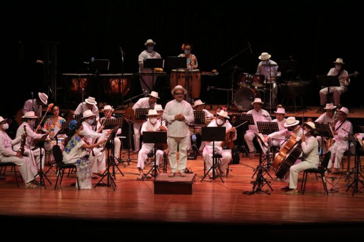 La majestuosidad del teatro José María Iturralde Traconis en Valladolid, enmarcó la primera noche de música y alegría del Otoño Cultural 2021, el recinto, remodelado por la actual administración estatal y que albergó a una de las escuelas públicas centenarias de Yucatán, vibró con el talento de María Medina acompañada por la máxima institución musical de la entidad, la Orquesta Típica Yukalpetén (OTY).