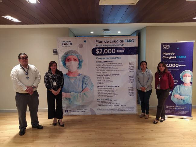 Hospital Faro del Mayab anunció el lanzamiento de su Plan de Cirugías Faro, que ofrecerá precios accesibles para las 17 cirugías más solicitadas por los pacientes en esta época de pandemia. Del 15 de octubre al 31 de diciembre entrarán en esta modalidad cirugía generales, proctología, ortopedia, neurocirugía y ginecología.