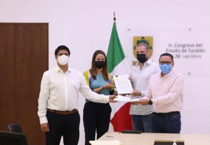 Por instrucciones de Vila Dosal y acompañados de representantes de organizaciones civiles, el consejero Jurídico, Mauricio Tappan Silveira, y la titular de la Secretaría de Desarrollo Sustentable (SDS), Sayda Rodríguez Gómez, entregaron al secretario General del Congreso local, Adrián Anguiano Aguiar, la iniciativa de Ley de Cambio Climático.