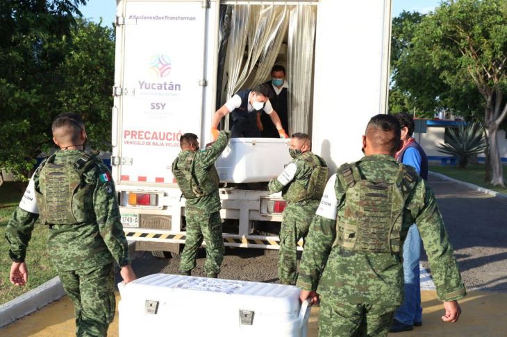 Acompañado del director general del Centro Nacional de Programas Preventivos y Control de Enfermedades del Gobierno de México, Ruy López Ridaura, y del coordinador estatal para la Vacunación Covid-19, capitán de Corbeta Carlos Gómez Montes de Oca, Sauri Vivas constató la descarga del lote, a cargo del personal del Ejército, el cual fue colocado en un camión thermoking de la SSY, para luego ser trasladadas al almacén estatal, desde donde se distribuirán a los lugares en que se aplicarán.