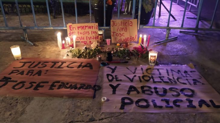 Las personas cargaron veladoras prendidas, flores y pancartas con las leyendas "en memoria de todos los que el Estado nos ha quitado" y "justicia para José Eduardo".