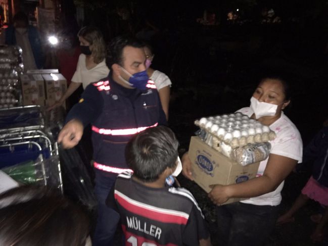 También se llevó al cabo el reparto de productos de la canasta básica a los afectados, entre ellos cartones de huevo, galletas y paquetes alimenticios, así como catres, entre otros.