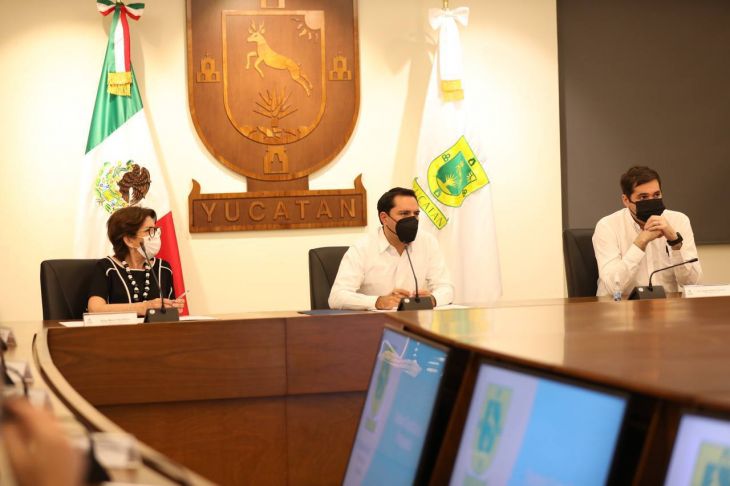 Acompañado del representante del Consejo Coordinador Empresarial (CEE), Jorge Charruf Cáceres, y las titulares de las Secretarías General de Gobierno (SGG), María Fritz Sierra, y de Administración y Finanzas (SAF), Olga Rosas Moya, Vila Dosal encabezó la segunda sesión extraordinaria de dicho organismo, en la que se afinó los últimos detalles y se aprobó de manera unánime la propuesta de paquete fiscal para el siguiente año.