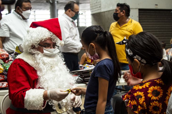 A seis días de Navidad, en el Mercado de San Benito alrededor de 200 niños recibieron juguetes de las manos de Santa Claus, buscando compartir la alegría de estas fiestas decembrinas.