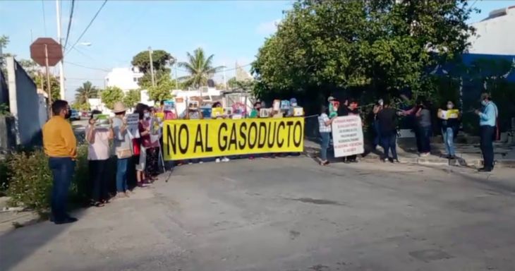 Los manifestantes cerraron un tramo de la calle 11A con 34 y 36; cargaban diversos carteles, el más largo, de color amarillo, ocupaba gran parte de la movilización con la leyenda: “No al gasoducto”; “Los vecinos de este fraccionamiento Residencial pensiones no queremos ni autorizamos el gasoducto”, se podía leer en otro cartel.