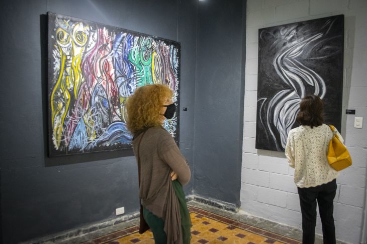 La muestra está compuesta por 19 obras elaboradas con gran variedad de técnicas como mixtas, acrílicos y óleos. La mayoría, explicó, está desarrollada directamente del pigmento puro con el carboncillo: “Casi no utilizo pinceles. La obra va directamente de la piel al lienzo”, señala.