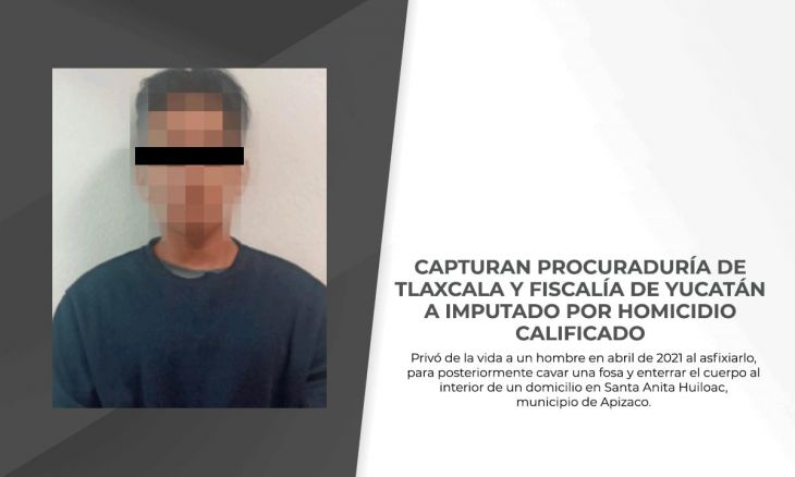 “El 18 de febrero del año en curso, policías de investigación adscritos a la PGJE se trasladaron a Yucatán, donde a través de un operativo ubicaron al imputado y cumplieron con el mandamiento judicial en su contra”, explicó la dependencia tlaxcalteca.