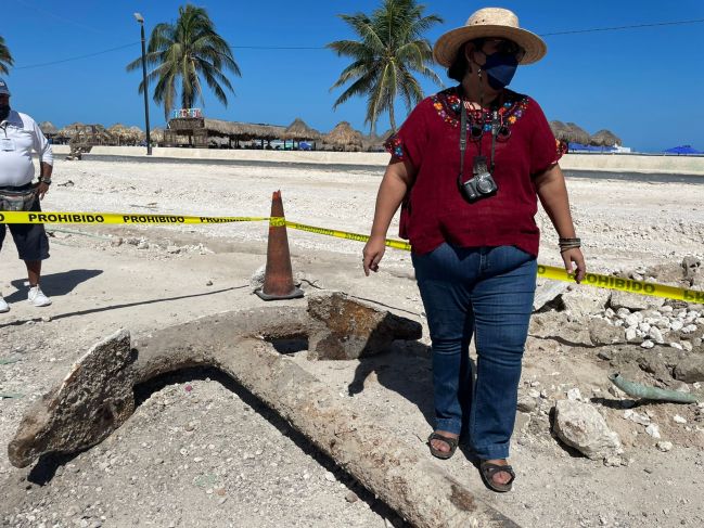 Al lugar llegaron los arqueólogos Ángel Gongora Salas e Ileana Ancona Aragon, quienes dieron fe del hallazgo arqueológico e histórico durante la ejecución de las obras en la localidad de Progreso, Yucatán.