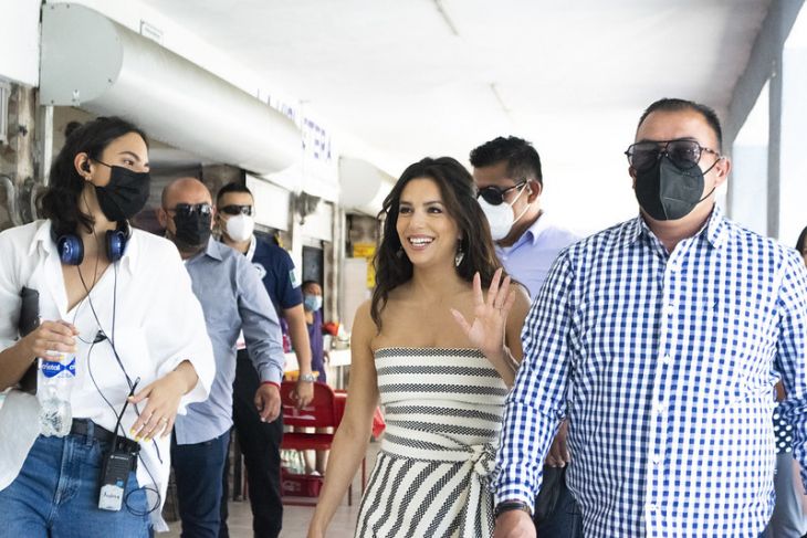 La actriz Eva Longoria estuvo en Mérida como parte de una producción enfocada en la gastronomía yucateca. La también empresaria visitó el mercado de Santiago, en donde degustó unos papadzules de la lonchería La Lupita.