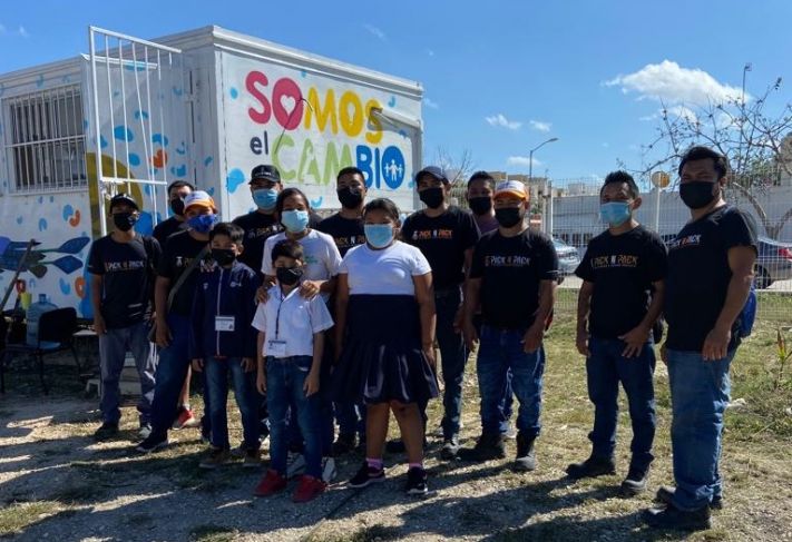 Hoy el mural, realizado por el artista Datoer, ya se encuentra plasmado en el aula móvil y, gracias al apoyo de la sociedad civil, gobierno y empresas privadas, lograron tener también árboles, jardín, una pizarra y ventiladores nuevos, lo cual la maestra celebra porque influye directamente en el alumnado.