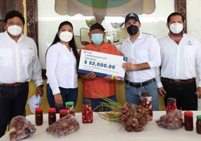 La ayuda que tanto esperaba José Felipe Chim Cocom para impulsar el cultivo de las cebollitas de Ixil en sus tierras, tras las afectaciones por el paso de huracanes y tormentas, llegó a sus manos al iniciar el gobernador Mauricio Vila Dosal la entrega de apoyos económicos para el estímulo a la producción en beneficio de hombres y mujeres dedicados a la siembra de esta hortaliza.