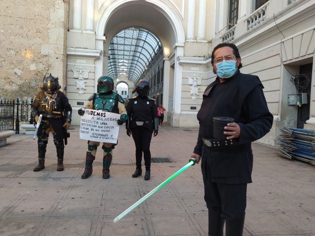 Este viernes 13 de mayor, integrantes de la agrupación Star Wars Fan Club de la Península, realizaron un boteo a un costado de la Catedral de Mérida, en beneficio de Milagros, pequeña que tiene cáncer y necesita una operación.
