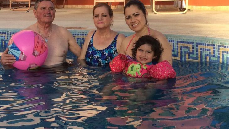 Recorriendo la vista por el álbum familiar, Don Carlos se topa con fotos de su esposa en la alberca del hotel, en la hamaca, “con una cara de felicidad, debería verla. El problema no es que entre a la alberca, el problema es sacarla. Siempre promete: "otros 15 minutos y nos vamos”.
