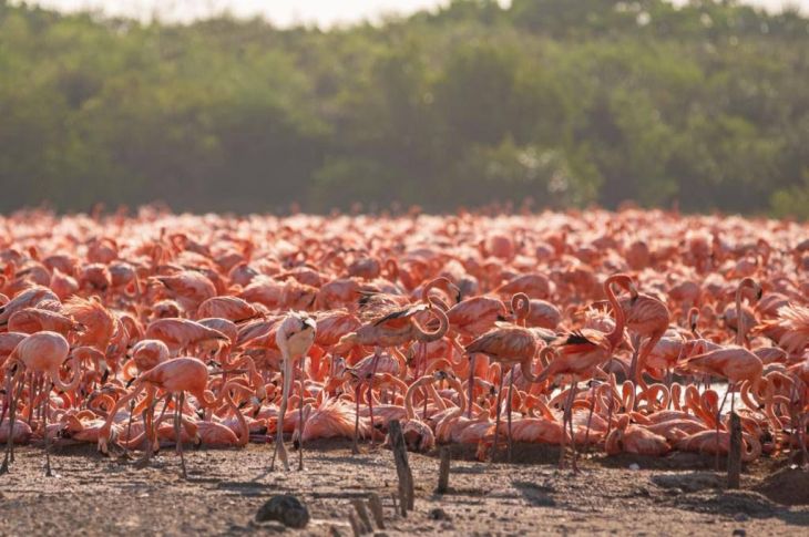 En un hecho poco común debido a que históricamente los flamencos eligen la Reserva de la Biosfera Ría Lagartos, este año, seleccionaron dicha reserva ubicada en la Costa Norte de Yucatán para establecer sus nidos al contar con las características necesarias para asegurar una reproducción exitosa, con lo que en un futuro se obtendrán más ejemplares de esta distinguida ave.