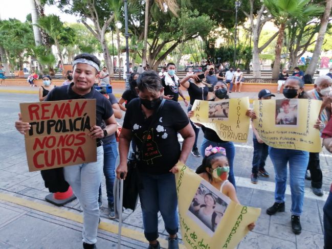 Al grito de "José Eduardo no murió, el Estado lo mató" y de "Justicia para el güero", la mujer y compañía pidieron que el alcalde Renán Barrera emita la disculpa que la Comisión Nacional de Derechos Humanos (CNDH) solicitó.