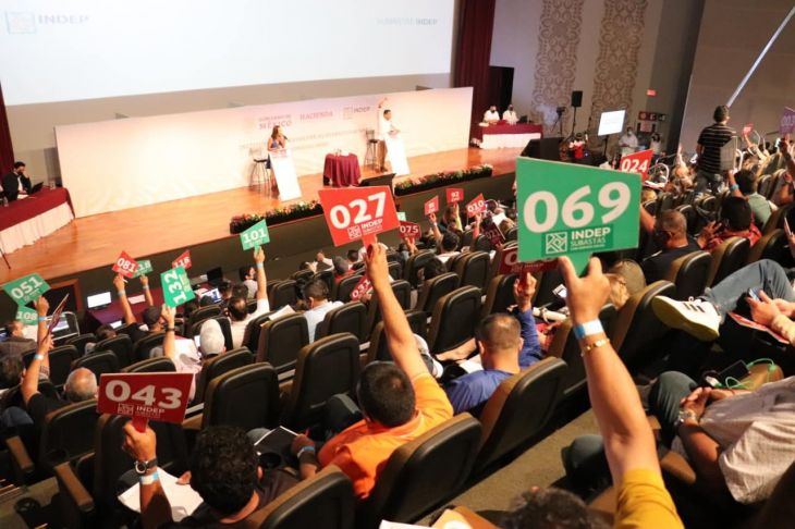 Más de cinco horas duró la primera jornada de la Subasta Regional a Martillo de bienes e inmuebles que organizó el Instituto para Devolver al Pueblo lo Robado (Indep), este 11 de agosto, en el Gran Museo del Mundo Maya, de Mérida.