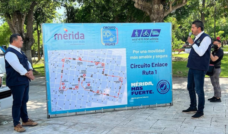 El ayuntamiento de Mérida dio inicio al nuevo esquema de rutas que ofrecerá el programa Circuito Enlace, mismo que “permitirá acercar a las y los usuarios a las dependencias para realizar sus trámites, espacios lúdicos y a los barrios en el centro de la ciudad”, informó el alcalde, Renán Barrera Concha.