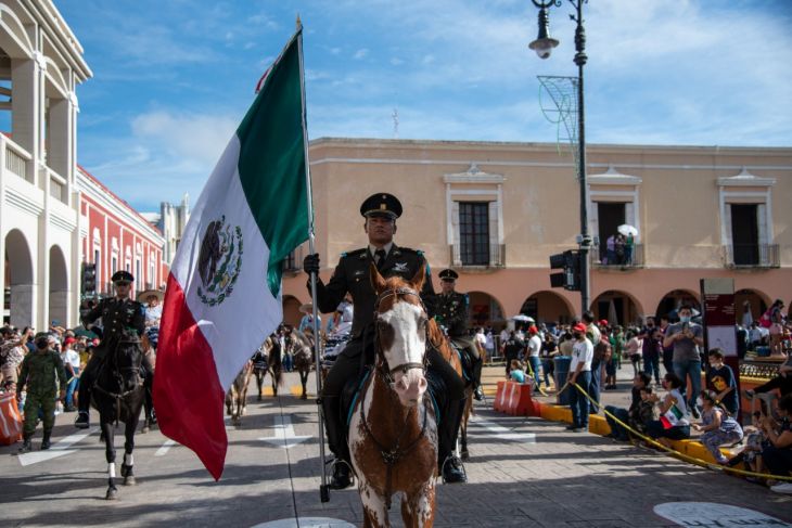 Estuvieron presente jinetes y escaramuzas, contingentes de vehículos automotores y eléctricos, lanchas, camiones de bomberos, cuatrimotos, motocicletas, ambulancias, escoltas y bandas de guerra durante esta fiesta cívica. Así como también marcharon elementos de la Marina, Cruz Roja, Cruz Ámbar, SSP, la Policía Municipal de Mérida, del Servicio Militar, de la Guardia Nacional y del Ejército.