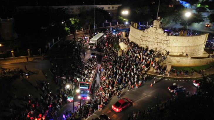 Por la noche, los monarcas participaron en un desfile del parque Kukulcán a la Plaza Grande, pasando por el Monumento a la Patria.