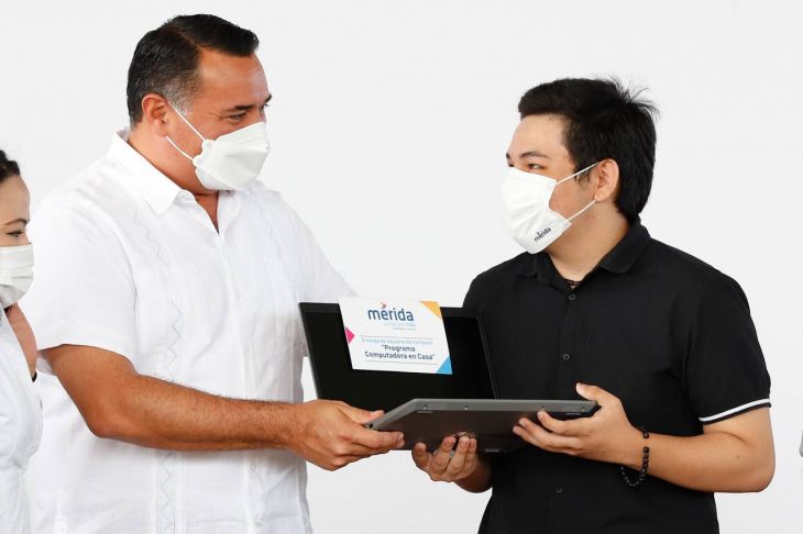 Acompañado de Rafael Rodríguez Méndez, regidor presidente de la Comisión de Juventud, Deportes y Educación y María José Cáceres Delgado, directora de Desarrollo Social, Barrera Concha manifestó que esta Mérida humana reitera su confianza en su juventud a través de los programas de Becas Económicas y Computadora en Casa, apoyando a sus familias para que ninguna niña, niño o joven se vea en la necesidad de suspender sus estudios por falta de recursos o herramientas escolares básicas para lograr su formación académica.