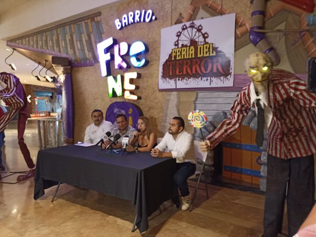 “En caso de no aguantar el recorrido grite tres veces: Quiero salir”, ésta es una de las advertencias que se pueden leer antes de ingresar a La Feria del Terror que abrió sus puertas en el Barrio Frenesí, dentro de la plaza comercial La Isla Mérida, al norte de la ciudad.