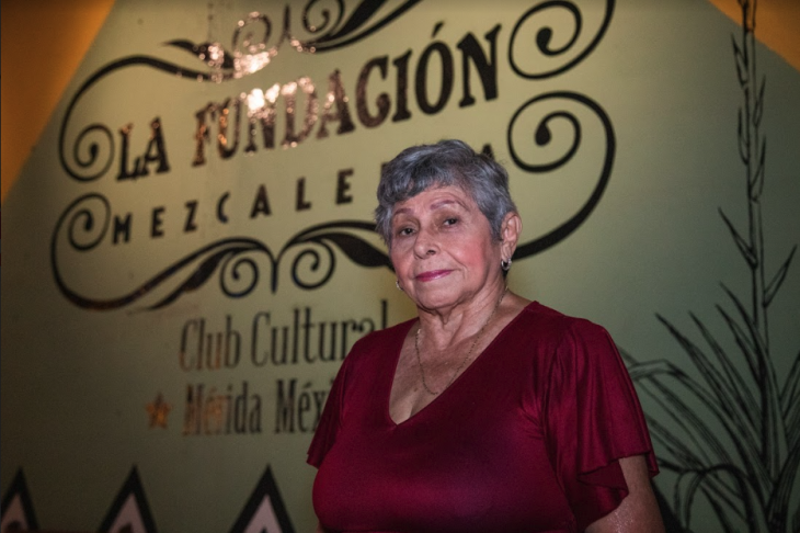 Isabel Molina Gutiérrez es el pilar de la seguridad y el corazón de la Fundación La Mezcalería, a la cual considera su hogar, su familia. Desde hace 10 años se dedica a las labores de seguridad y limpieza del establecimiento. Su foto forma parte de la decoración y galería del reconocido bar en el centro de Mérida.