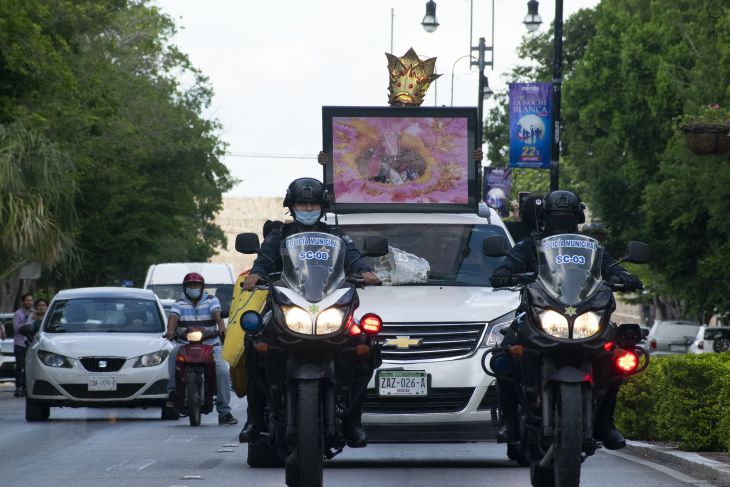 Con una caravana de coches, los meridanos despidieron a Marcelo Sanguinetti Briceño Jacarandoso. El cuerpo del fallecido dio su último paseo carnavalesco con alegría, música, aplausos y baile camino al cementerio Xoclán.