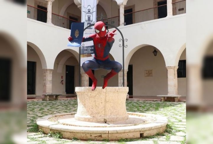 Julio Mac Cervantes recibió su título de contador público este viernes en la Universidad Autónoma de Yucatán (UADY) -rectoría-, pero lo hizo disfrazado del superhéroe de Marvel Spider-Man, lo que causó que la fotografía del acontecimiento se hiciera viral en redes sociales.