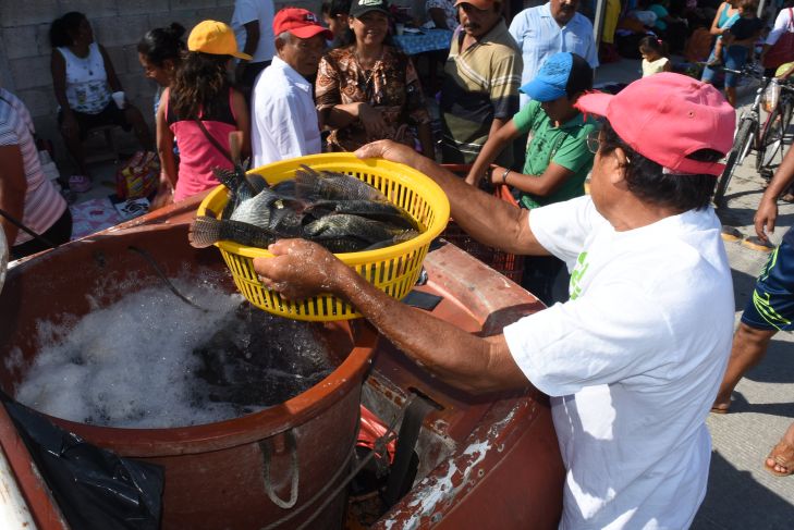 En ese sentido, la beneficiaría comentó que antes realizaba venta por menudeo y dependía de sus proveedores, pero ahora a través de sus estanques puede producir de 1 a 1.5 toneladas de tilapia al año, además, en su punto de venta ofrece pescado fresco y frito, el cual a la fecha se encuentra en 90 pesos el kilo.
