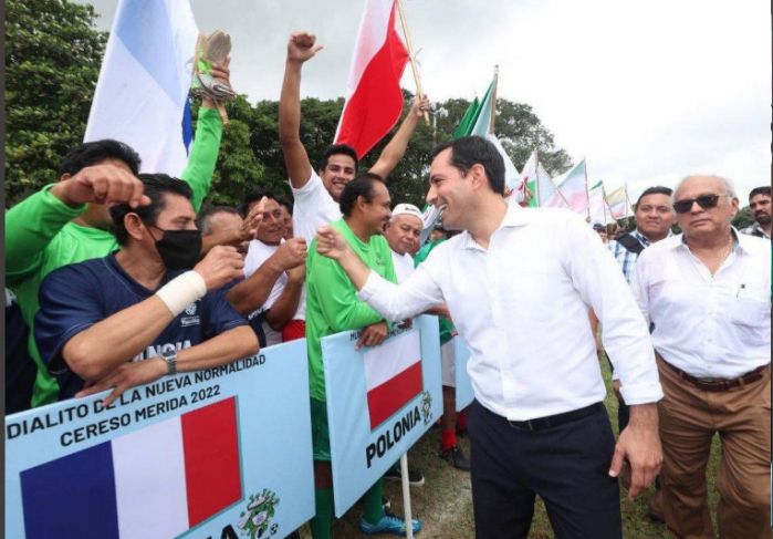 El campo de fútbol del Centro de Reinserción Social (Cereso) de Mérida se llenó de emoción, colores y un gran ambiente por el arranque del Mundialito Cereso 2022, única fiesta futbolera que se realiza en un Centro de Reinserción Social en todo México como una réplica del Mundial Qatar 2022, al realizarse partidos en los que participan los internos de este lugar, evento que respalda el gobernador Mauricio Vila Dosal, como parte de las acciones que impulsa para una buena reinserción social a través del fomento al deporte.