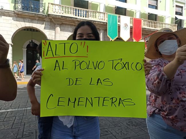 Las y los manifestante cargaron carteles con las leyendas de “alto a la contaminación”; “alto al polvo tóxico de las cementeras”; “no más empresas cementeras”; “el cemento contamina y daña la salud”.