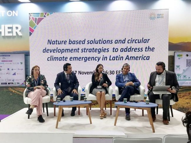 La funcionaria compartió los avances de la entidad, principalmente en temas de electromovilidad y proyectos de soluciones basadas en la naturaleza, y resaltó el potencial del territorio para la generación de proyectos integrales con garantía de conservación de los ecosistemas y así acceder de forma justa y segura al Mercado Voluntario de Carbono, entre otras iniciativas del gobierno estatal para combatir el cambio climático.