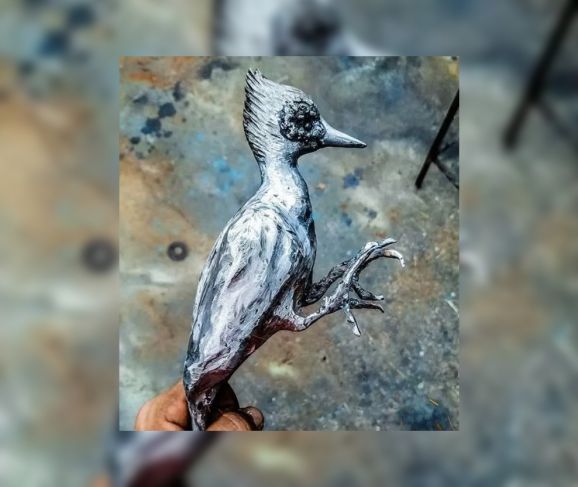 La pieza merecedora del triunfo fue una escultura de 30 cm de altura; un pájaro carpintero realista inspirado en la fauna local, modelado directamente sobre tubulares y sólidos de metal, acabado con pátinas de colores rojos y cobrizos obtenidas con la aplicación de ácidos y el manejo de fuego. Además, el ave está montada sobre un pedestal que simula un árbol con un nido excavado, forma que escenifica y da vida al animal.
