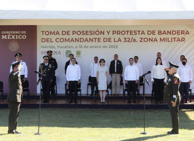 El gobernador Mauricio Vila Dosal asistió a la ceremonia de cambio de mando de la 32 Zona Militar, con sede en Valladolid, donde el General de Brigada Federico Eduardo Solórzano Barragán, rindió protesta como responsable de esa comandancia.