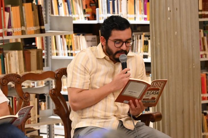 Este viernes 20 de enero, Marín Ramírez presentó su libro Nadie en casa en la biblioteca Manuel Cepeda Peraza junto con el escritor Carlos Martín Briceño. También estuvo presente la secretaria de Cultura de Yucatán, Loreto Villanueva.