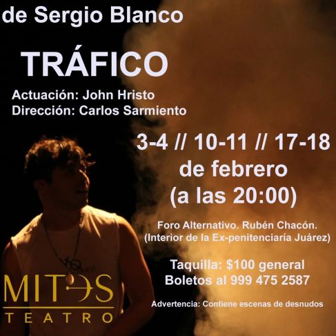 Tráfico se pondrá en escena en el “Rubén Chacón” los días 3 y 4; 10 y 11; y 17 y 18 de febrero. El precio de los boletos será de 100 pesos y pueden reservarse al 9994752587. La obra no es apta para menores de edad, ya que contiene escenas de desnudos.