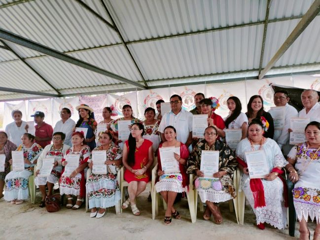 La presidente nacional del organismo, Carmen Cariaga Serran, entregó los nombramientos a los secretarios del Consejo y a los jefes Supremos Mayas de 16 municipios y al Delegado Estatal, Jorge Arjona Tamayo.