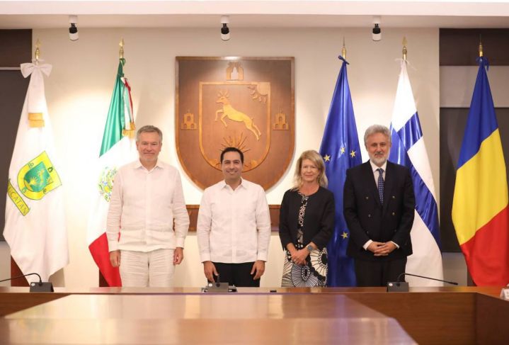 El gobernador Mauricio Vila Dosal se reunió con los embajadores en México de la Unión Europea (UE), Gautier Mignot; Finlandia, Päivi Pohjanheimo, y Rumania, Marius Gabriel Lazurca, para establecer lazos de cooperación y trabajo conjunto en materia de sustentabilidad, cuidado del medio ambiente.