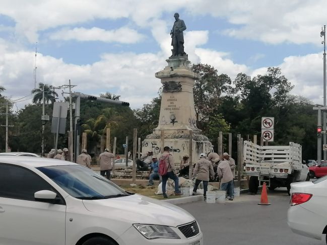 Desde este martes 28 de febrero, pudieron observarse brigadas de la Dirección de Servicios Públicos Municipales del Ayuntamiento de Mérida protegiendo monumentos ubicados en la avenida Paseo de Montejo, el hecho ocurre a 8 días de la manifestación por el Día Internacional de la Mujer.