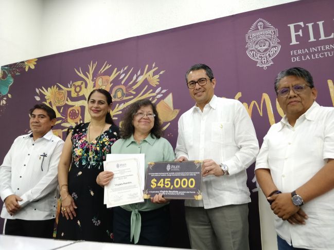 “Es un premio, no solo para mí, sino también para el periodismo cultural”, sentenció la recipiendaria del galardón ante diversas autoridades. Con 37 años de trayectoria, emitió un mensaje a sus colegas en el marco de la feria de letras más importante de Yucatán.
