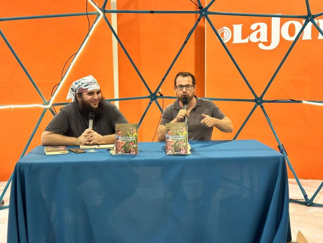 Rulo Zetaka, colaborador de este periódico, acompañó a Omar Giraldo a la presentación de su obra realizada en la cúpula azul de La Jornada Maya en la Feria Internacional del Libro Yucatán (Filey). En este evento destacó la forma en la que el autor presenta a la esperanza como un motor para que los pueblos se movilicen.
