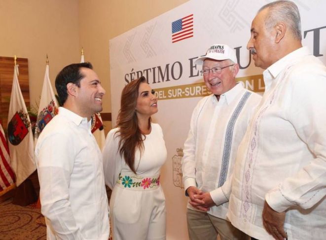Durante la reunión de gobernadores del Sur-Sureste con la Embajada de Estados Unidos, Kenneth Lee Salazar, embajador de la Unión Americana, destacó que el liderazgo del gobernador es conocido en todo el mundo, sobre todo en materia de cuidado del medio ambiente.