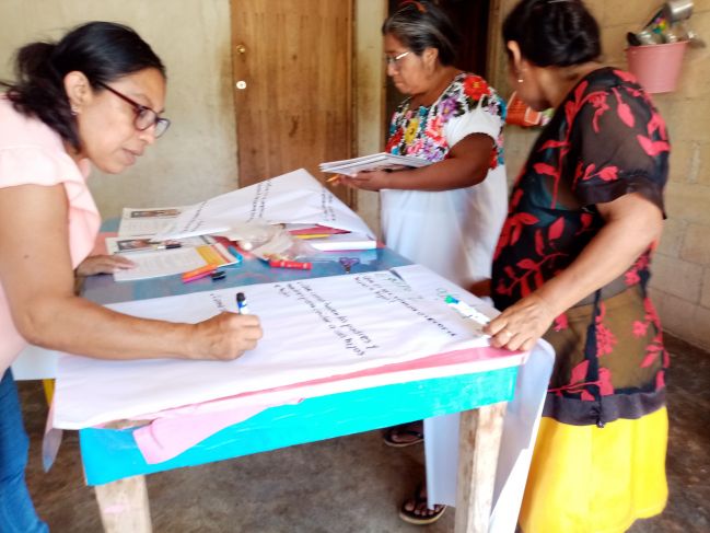 Mena Ku y otras 11 mujeres de su comunidad recibieron un taller de capacitación por parte de Apis Sureste Fundación para la Equidad, en coordinación con el Centro Alternativo para el Desarrollo Integral Indígena (CADIN).