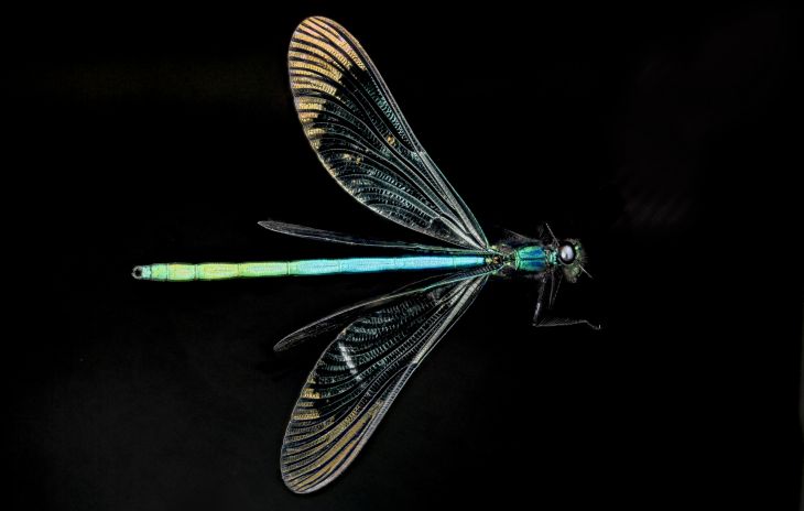 El orden de esta especie, dijo, es Odonata y presentan características comunes, tales como ojos compuestos muy grandes que ocupan la mayor parte de su cabeza y tienen coloraciones llamativas de azul, rojas, blancas, moradas, amarillas, entre otras.