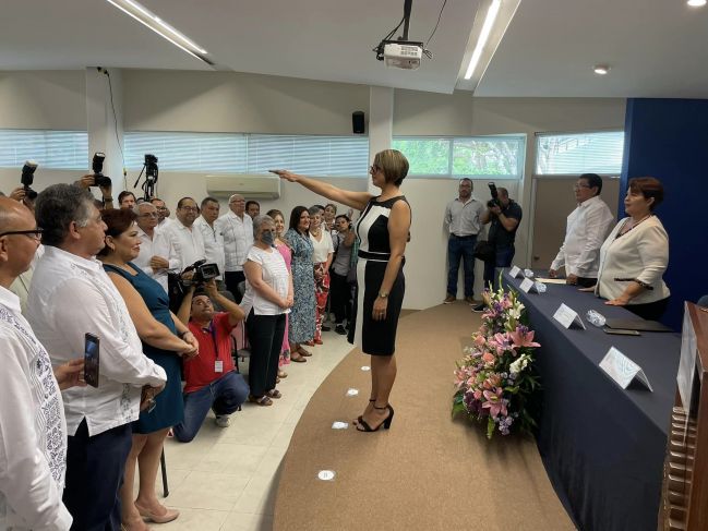 La doctora María Minerva Zapata Denis rindió protesta como directora de la Facultad de Derecho de la Universidad Autónoma de Yucatán (UADY) para el periodo comprendido del 1 de julio de 2023 al 30 de junio de 2027, lo que marca un hito en la búsqueda constante de la equidad y la igualdad de oportunidades dentro de esta institución al ser la primera mujer en encabezar este plantel.