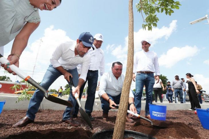 Acompañado del alcalde Renán Barrera Concha y la titular de la Secretaría de Desarrollo Sustentable (SDS), Sayda Rodríguez Gómez, Vila Dosal sembró el primer ejemplar, de la variedad maculis rosa, y constató la arborización de los 5 kilómetros del tramo, que atraviesa nueve colonias de la zona.